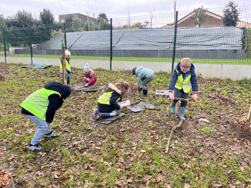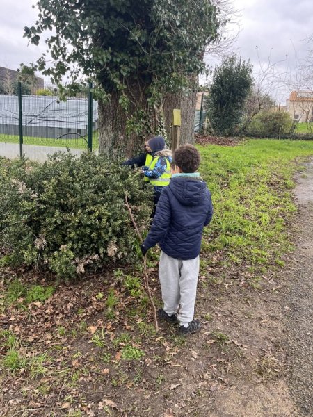 Ce mardi matin, malgré le froid, nous avons fait école dehors. Nous avons joué au béret, nous devions trouver si les mots étaient au masculin ou au féminin, au singulier ou au pluriel. Ca nous a réchauffé de courir un peu.