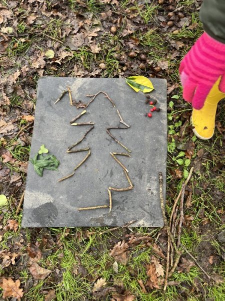 Nous avons fait des œuvres d’arts de Noël avec les éléments de la nature.