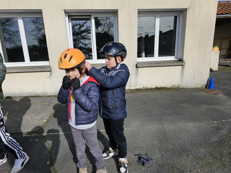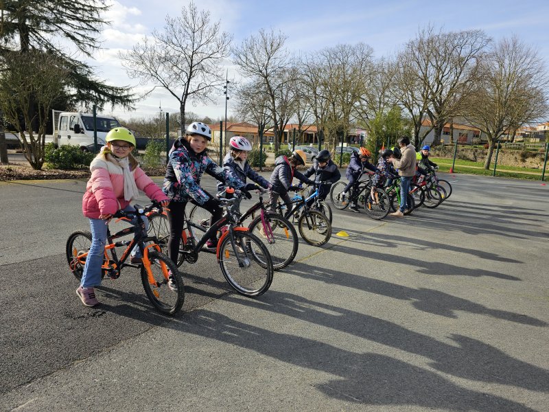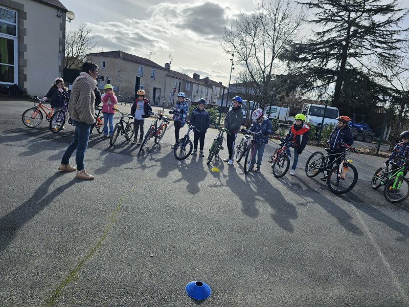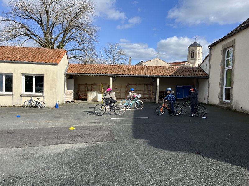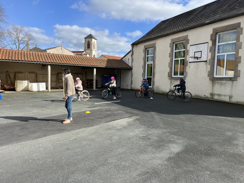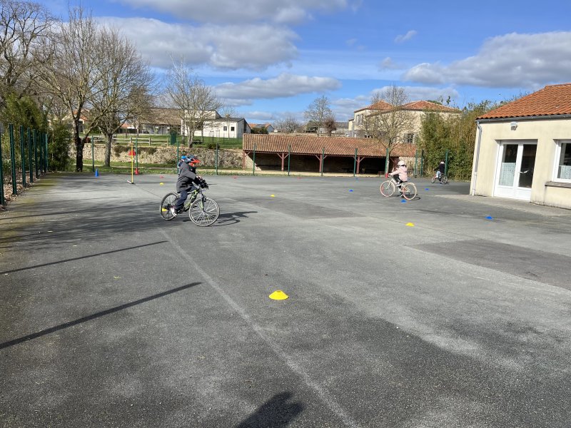 Au cours de cette période, Florence Letourmy, chargée de prévention routière, est venue entraîner les CE2 au parcours de maniabilité à vélo. Ils devaient s’arrêter au stop, préparer leur pédale pour démarrer, suivre une trajectoire, adapter leur vitesse. Certains se sont aussi entraînés à se servir de leurs bras pour indiquer leur changement de direction. Les enfants ont pris plaisir et de la confiance pour rouler en sécurité.