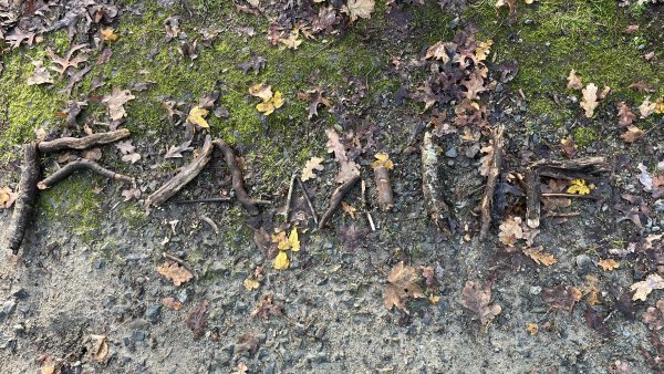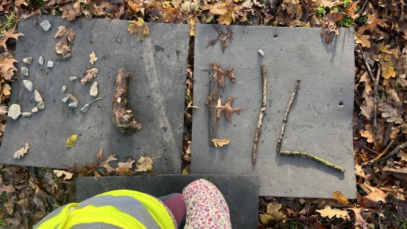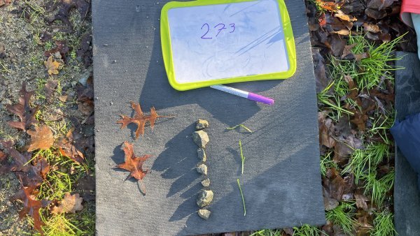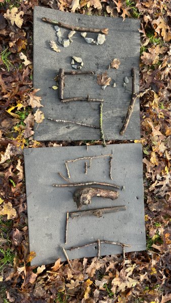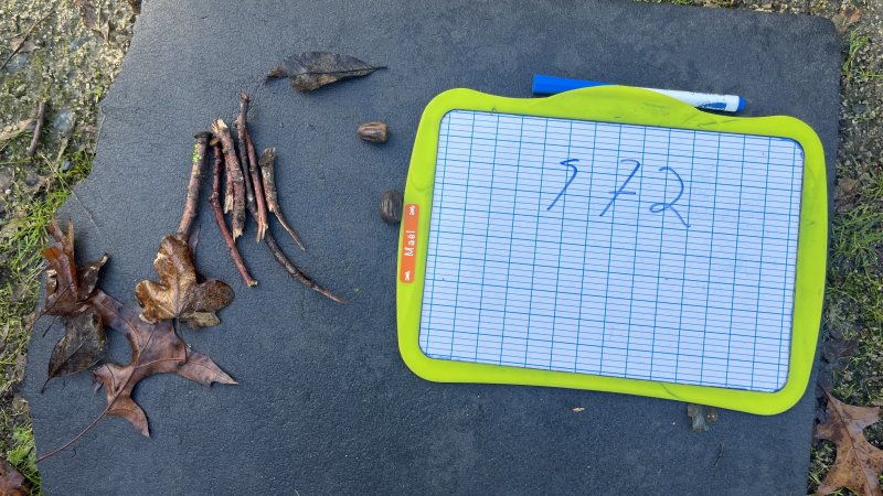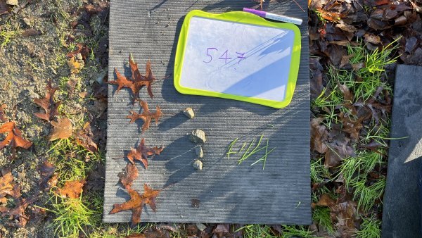 Le lundi 24 novembre, lors de notre deuxième sortie, nous devions ranger des mots en fonction de leur classe grammaticale, c’était un jeu qui nous a fait courir, nous n’avons pas eu froid malgré cette matinée hivernale. En numération, nous devions décomposer des nombres avec des éléments de la nature. Nous avons terminé cette matinée par un petit temps de poésie et une récréation. Nous avons essayé de construire une cabane.