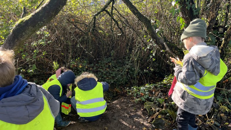 Lundi 8 décembre, nous sommes partis en école dehors une dernière fois avant les vacances de Noël. Nous avons travaillé les phrases affirmatives et négatives, les mots de dictée et les mesures de longueur. Nous avons terminé la matinée par du land ‘art sur le thème de Noël ainsi que part une récréation. Nous avons passé un moment très agréable.