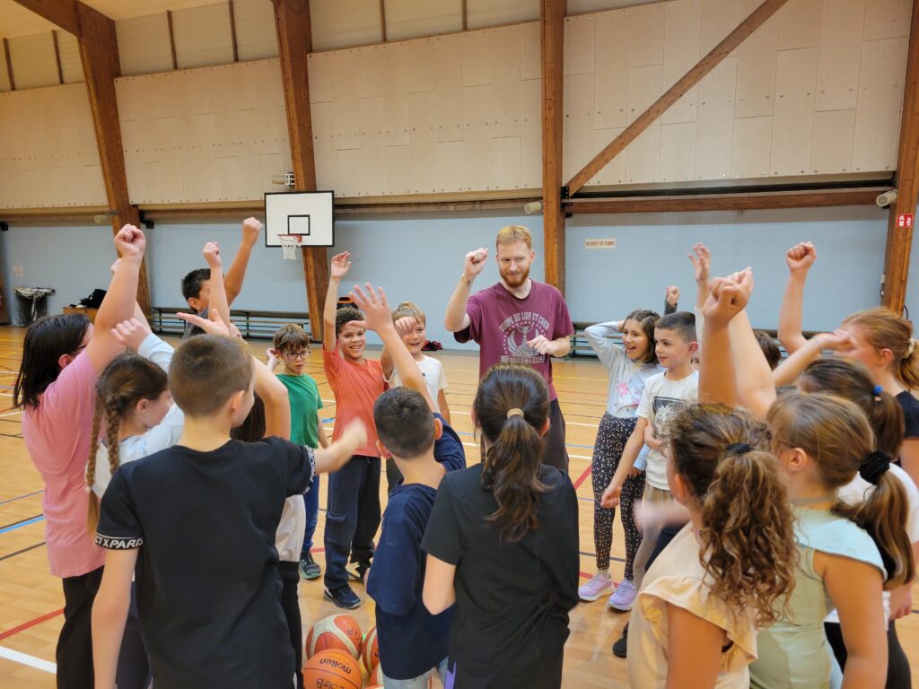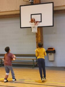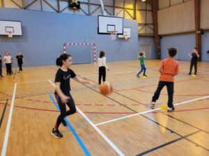 Nous avons fait du basket le vendredi après-midi de 15h35 à 16h20 à la salle de sport avec Valentin. Nous avons appris à dribbler et à mettre des paniers. On a fait un béret avec le ballon de basket et une balle au capitaine. Nous avons aussi joué au jeu de l’horloge et au loup-ballon. Ça s’est très bien passé sauf qu’il y a eu un léger blessé. Nous nous sommes bien amusés malgré tout. Nous avons aussi réalisé des matchs. A la fin des séances on faisait toujours un cri de basket pour se féliciter et s’encourager.