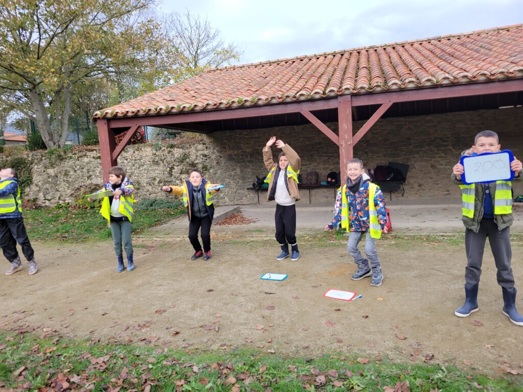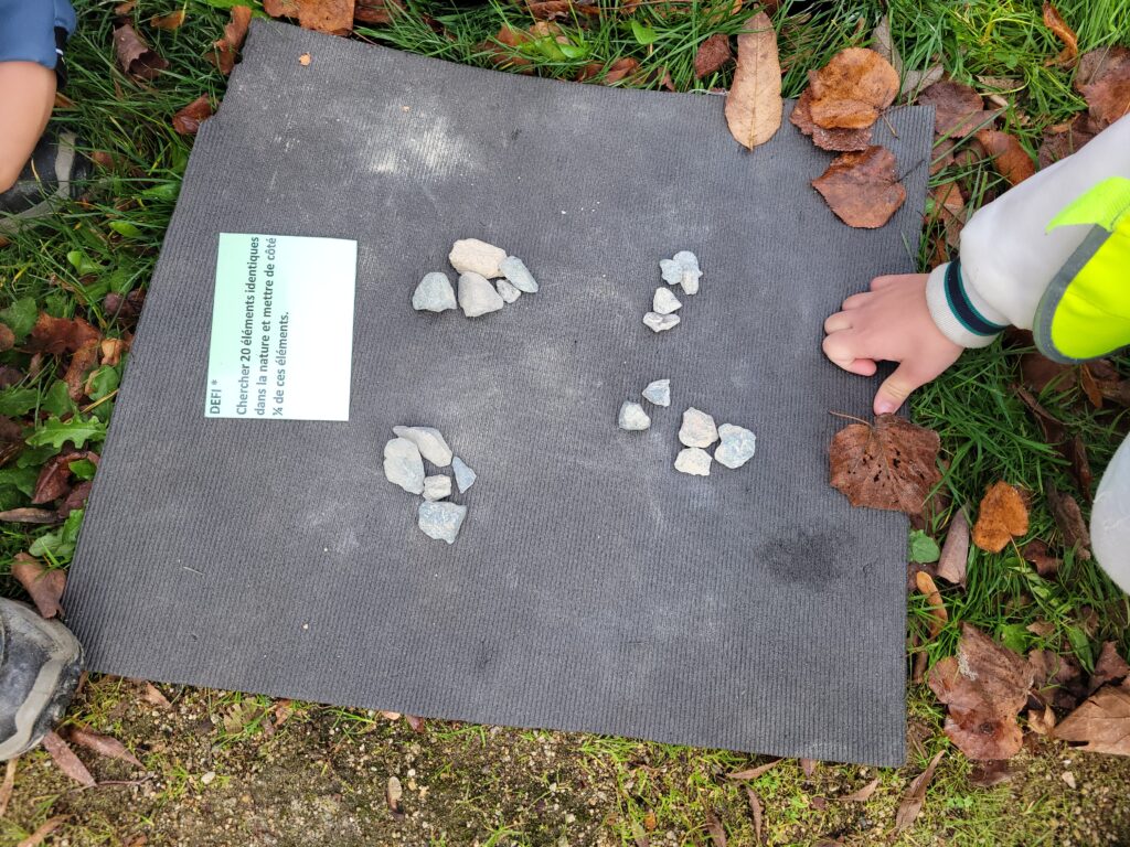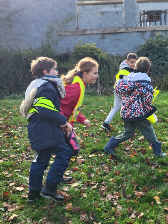 Nous sommes allés près du terrain de boules pour l’école dehors. Nous avons fait un béret sur les ou /où. On a résolu des problèmes avec des fractions en cherchant des étiquettes sous les plots. Nous avons utilisé les éléments de la nature. Nous avons aussi pris notre ardoise pour faire la table X4 avec la maitresse. Quand nous avions faux, nous faisions des jumping jack et quand nous avions juste, nous faisions des squats. Nous avons eu aussi un temps libre où nous avons joué avec les éléments de la nature et au loup. Enfin, on a fait la dictée en faisant un relais. C’était un chouette moment !