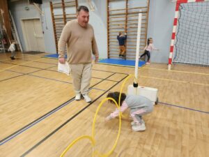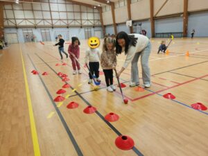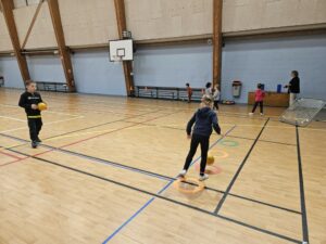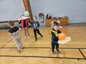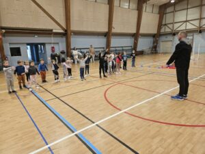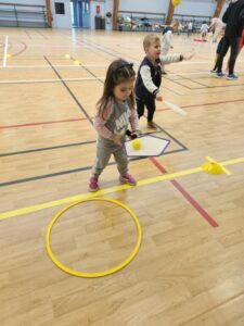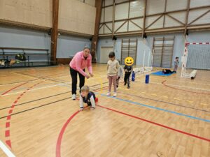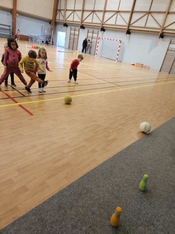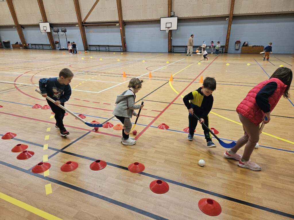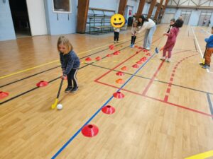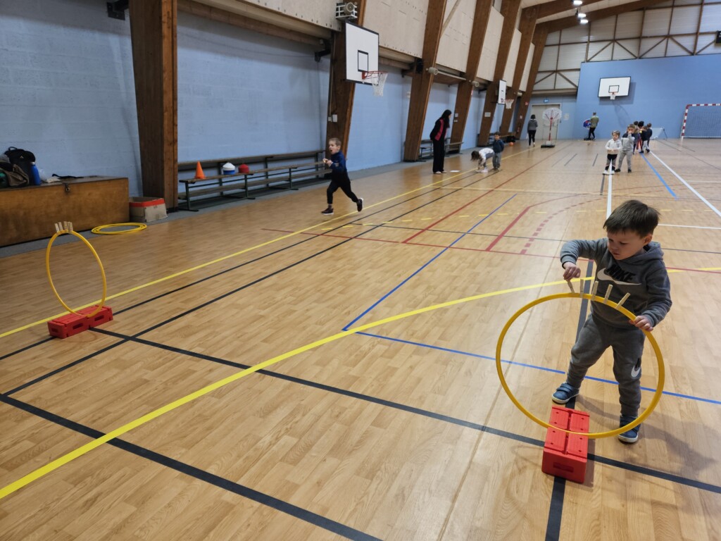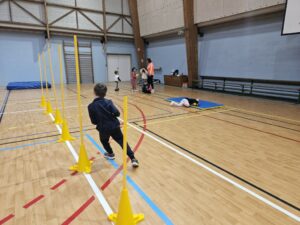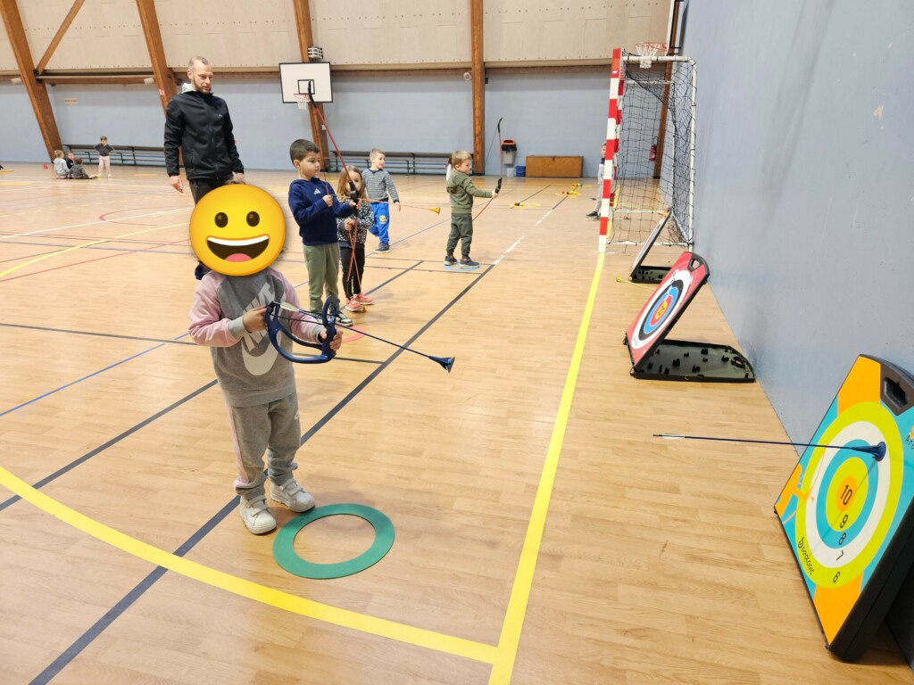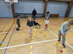 Au programme : des ateliers variés et ludiques pour développer les compétences motrices des enfants. Par petits groupes, ils enchaînent des activités telles que des parcours d’équilibre et de déplacement, du tir à l’arc, du hockey, des jeux de ballons (rugby, basket, hand), des jeux de vitesse et de réactivité, des relais ou encore du bowling.