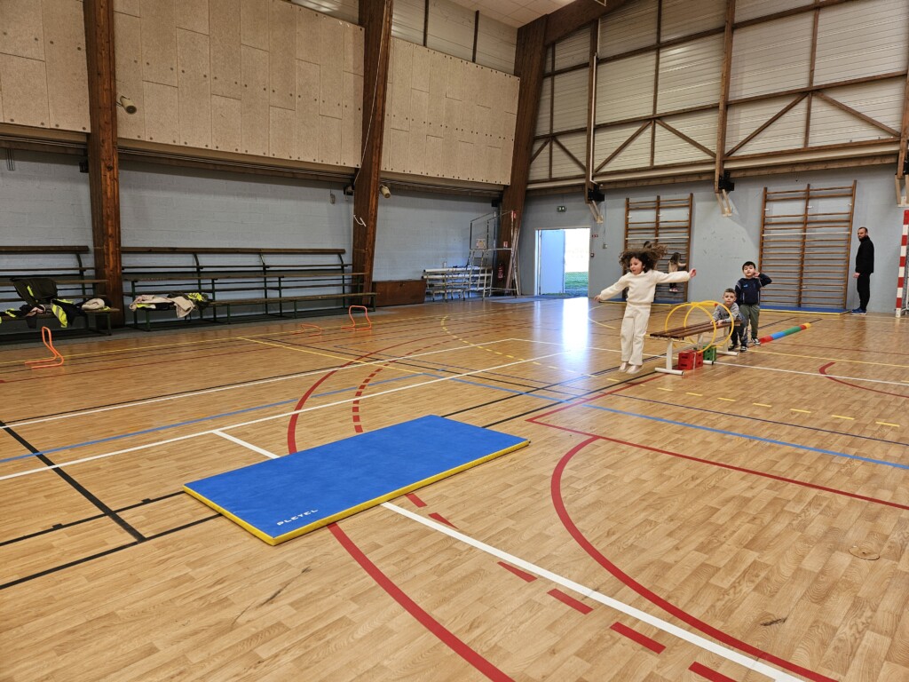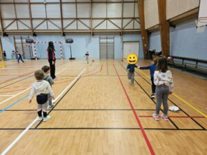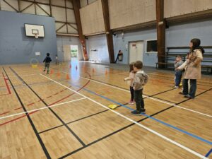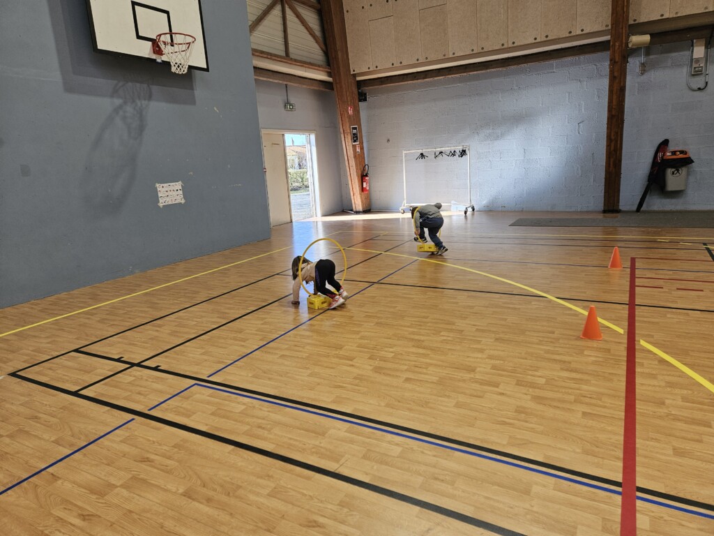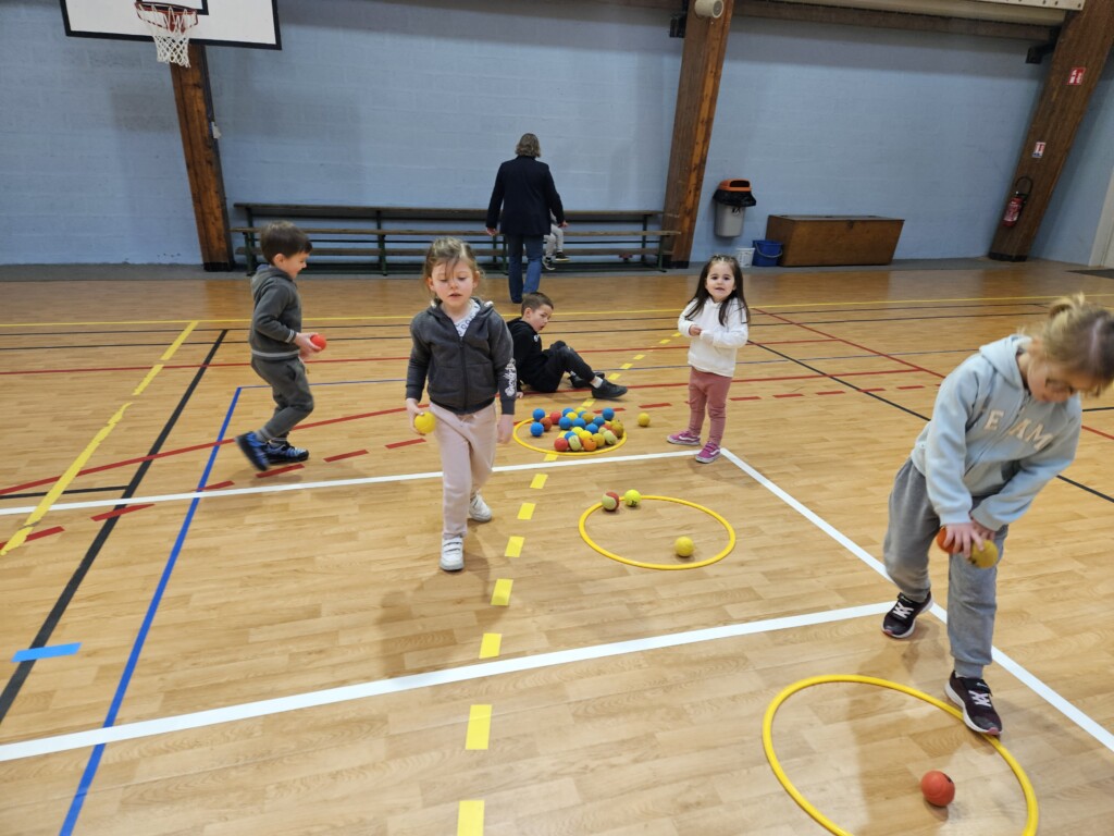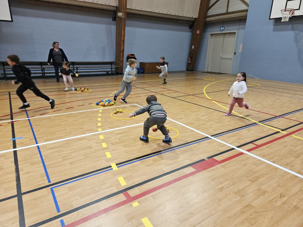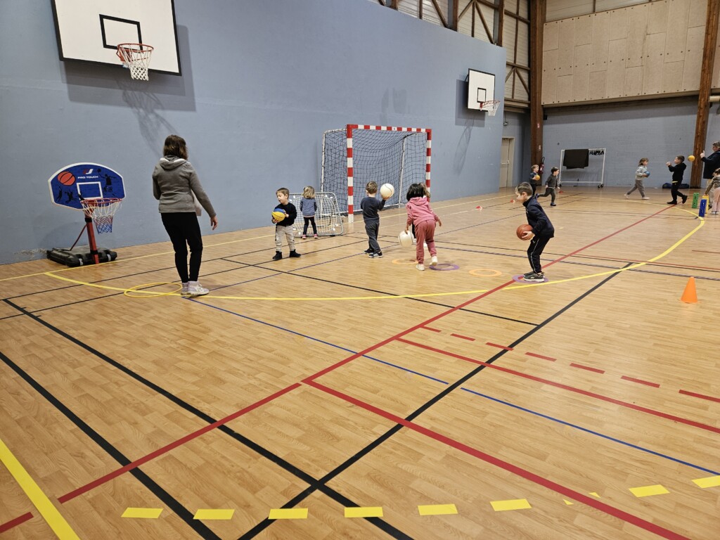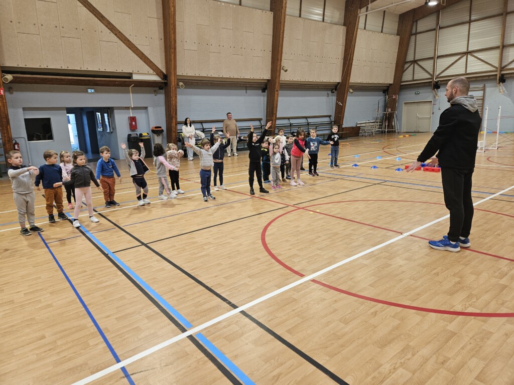Chaque mardi, les élèves de maternelle se rendent à la salle de sports pour participer à des séances de motricité animées par Arnaud, intervenant sportif de la commune.