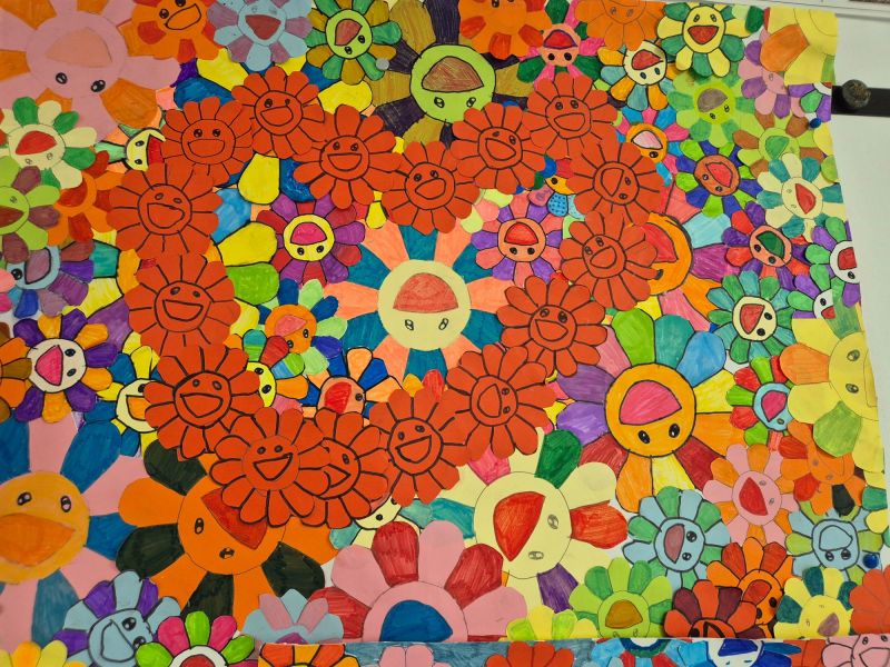 La JOIE :  œuvre collective regroupant des fleurs à la manière de Takashi Murakami.