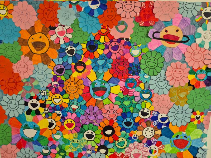 La JOIE :  œuvre collective regroupant des fleurs à la manière de Takashi Murakami.